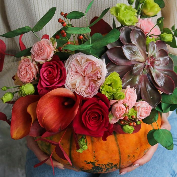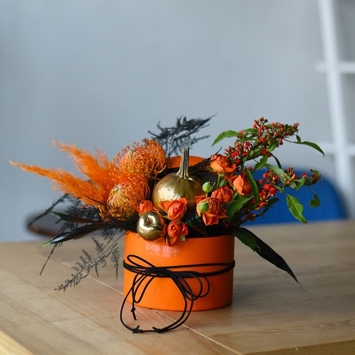 В качестве подставки для цветов или вазы могут использоваться тыквы, коробки, авторские конструкции. Есть возможность выбрать как готовую композицию, так и собрать персональный букет. Выбор зависит от потребностей и целей.