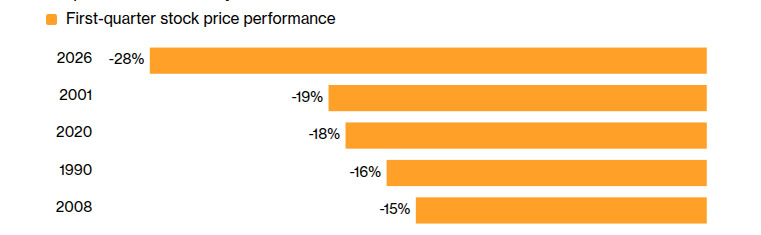 Серед конкурентів акції Richemont, яка минулого року довела свою стійкість завдяки своїм популярним золотим ювелірним виробам Cartier, впали приблизно на 20% у Цюриху за перші три місяці. Hermès International SCA, яка виробляє жадані сумки Birkin, втратила майже чверть своєї вартості за той самий період.